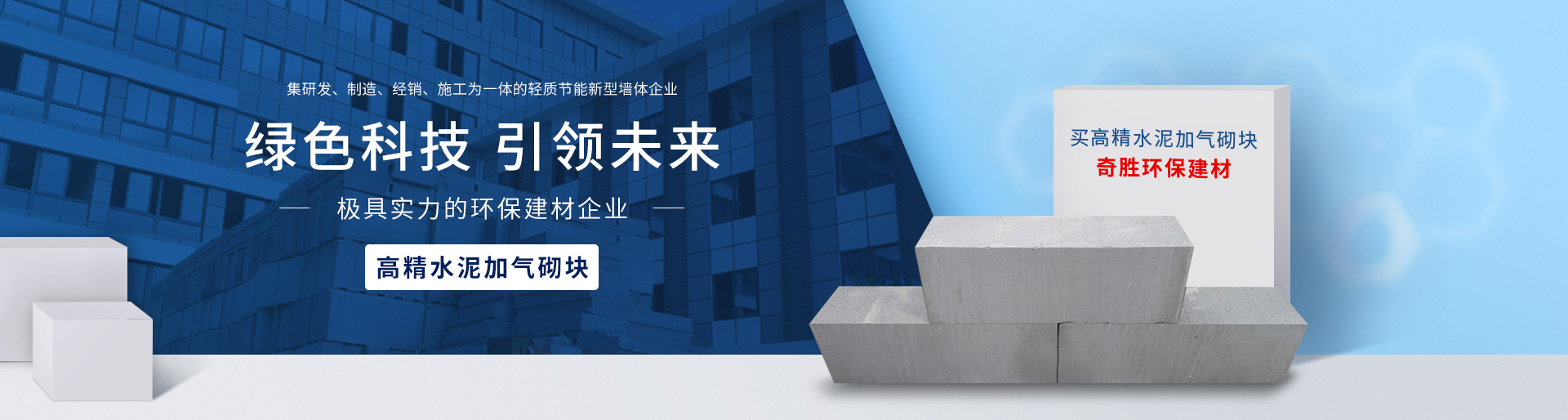福建奇勝環(huán)保建材科技有限公司隨著可開發(fā)利用的土地資源日趨減少及節(jié)能降耗意識的增強,實心粘土磚逐漸在全國各地被禁止使用,非粘土類新型輕質(zhì)墻體材料成了較為理想的替代產(chǎn)品。為適應建筑市場的需求,福建奇勝環(huán)保建材科技有限公司研發(fā)生產(chǎn)了巖安牌系列產(chǎn)品:巖安牌新新型高精水泥加氣砌塊(凹凸型)、巖安牌益膠泥等。